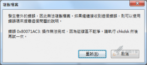 當某次小編在複製檔案到其他顆硬碟的時候,Windows突然出現了一個異常警示訊息【操作無法完成,因為磁碟區不乾 … 閱讀全文 使用Chkdsk指令快速修復磁碟區不乾淨的問題